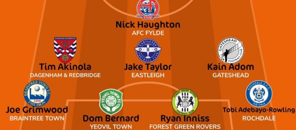 Fylde’s Nick Haughton is also named in the XI for his two first-half strikes which put them 2-0 up at half-time.