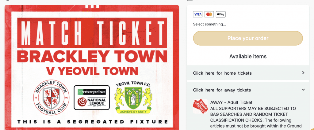 It’s a fairly easy process, which is always appreciated, select your tickets on the right hand side – you have the option to include a Match Day Programme too – and then click ‘Place your order’ towards the top of the page.
