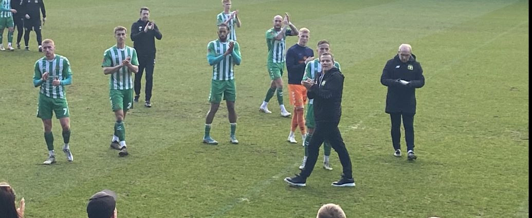 That was enough for the away end to turn on the manager. Very audible chants of “We want Cooper Out” were heard. The manager was unmoved with Chris Todd directing affairs on the the touchline.
