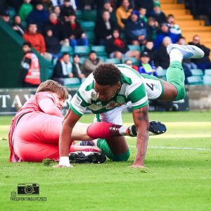 Conn Clarke had a 23rd minute free kick punched away by Ward, but the goal lifted Huish Park and the Yeovil players responded. Two minutes later, Efete put a cross in which Feeney had to be quick on his toes to deal with, before Aaron Jarvis had a penalty shout turned away by referee William Davies after he was pulled to the ground by Feeney. Jarvis manhandled by a defender, we’re as (not) shocked as you!