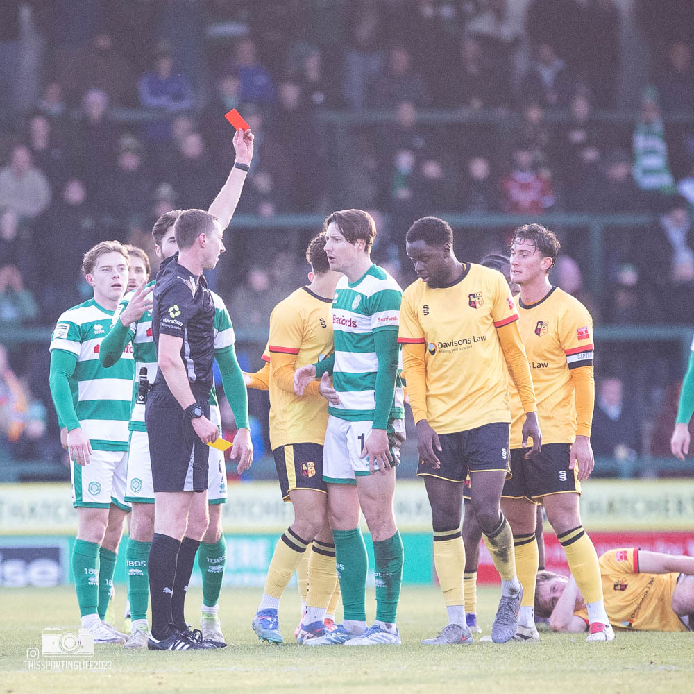 The Glovers appeared to be the dominant side in the first half, before a red card for Brett McGavin threatened to derail the Glovers’ hard work. Alvechurch grew into the game but both sides remained level at half-time.