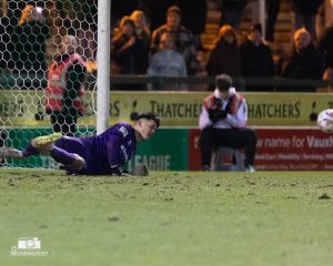- Alvechurch – Joe Willis – SAVED by Jed Ward (2-0)