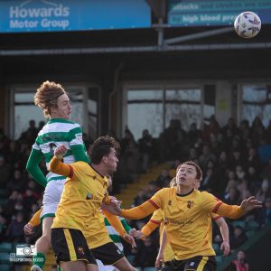 From the goal kick, Alvechurch enjoyed a rare foray into the Yeovil half, showing what they were capable of, their spell of possession ending with an offside flag against Kieran Wakefield. The Glovers made their way downfield from the free kick, earning a corner which tested the visiting ‘keeper once again via the head of Kyle Ferguson.
