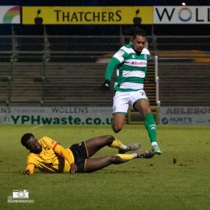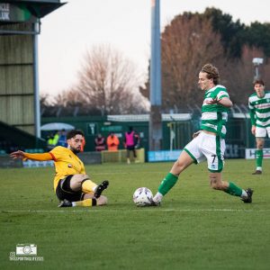 Moments later, a nice ball from Brett McGavin found Harvey Greenslade on the left wing, he cut past his man with ease before having a shot on goal blocked by Jessy Bavanganga. Positive signs from the Glovers as they looked to stamp their authority on the game early on.
