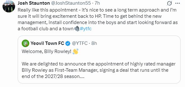 The appointment of manager Billy Rowley as Yeovil Town manager on Tuesday morning probably took a lot of fans not plugged in to the Huish Park rumour mill by surprise. Dave gives his thoughts on what at least appears to be a man with a plan.