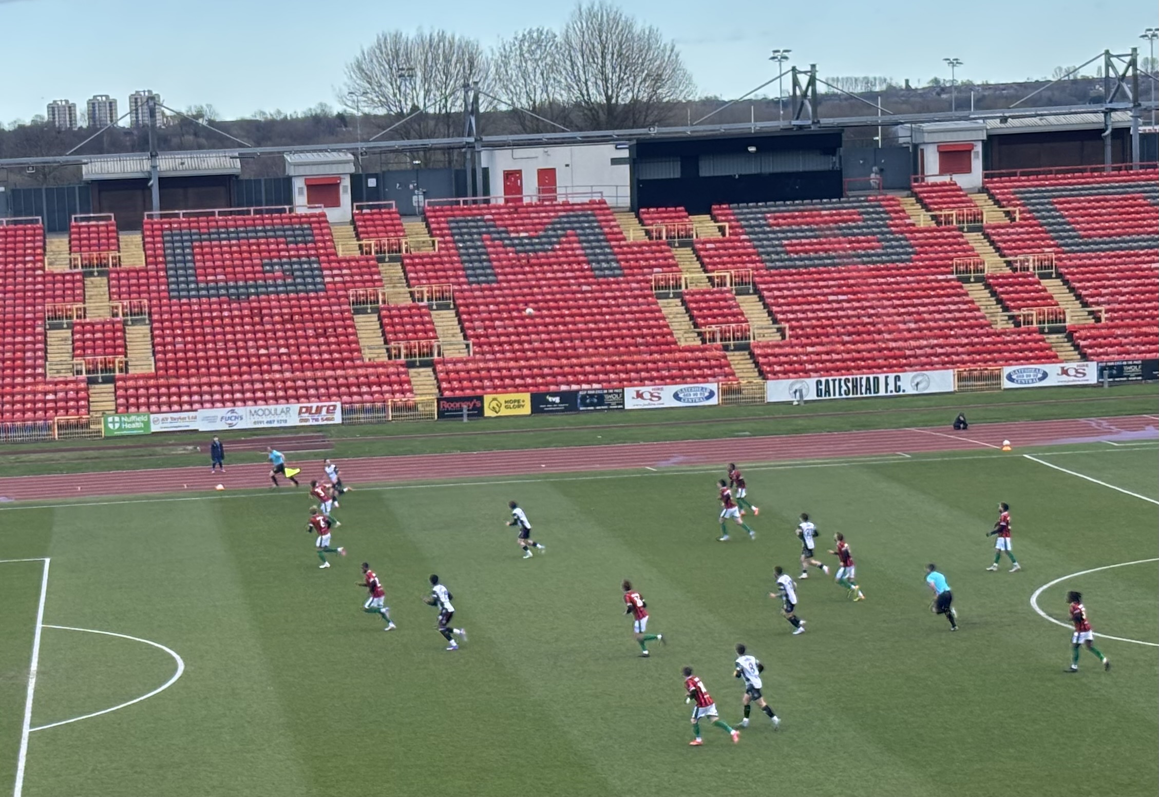 Within the first three minutes, Gateshead were forced in to a change when Levi Amantchi limped off to be replaced by Ashley Boatswain.
