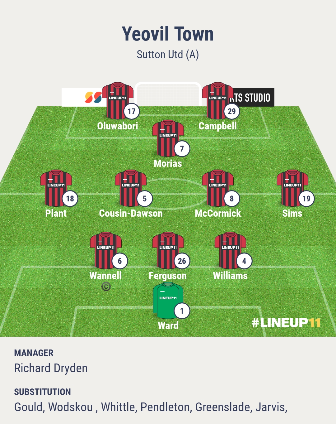 Sutton United: Jack Sims, Lewis Simper, Ashley Nadesan, Edon Pruti (for Vincent), Will Tizzard, Jack Taylor, Aaron Jones (for Ogbonna), Mo Dabre (for Bell), Noa Boutin (for De Silva), Brandon Njoku