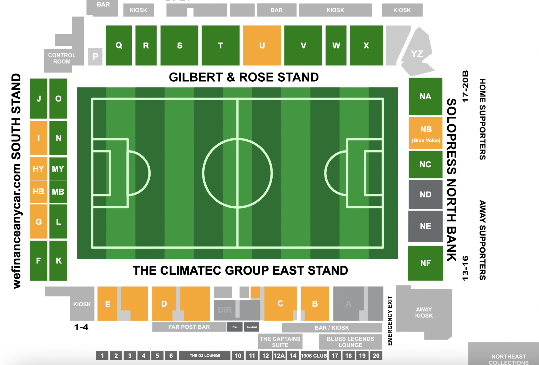 Away supporters can access the ground through turnstiles 13-16.