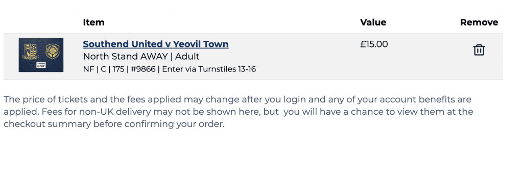Yeovil Town fans can now buy tickets for the upcoming away day to Southend United on Saturday 28th February – 3pm kick off.