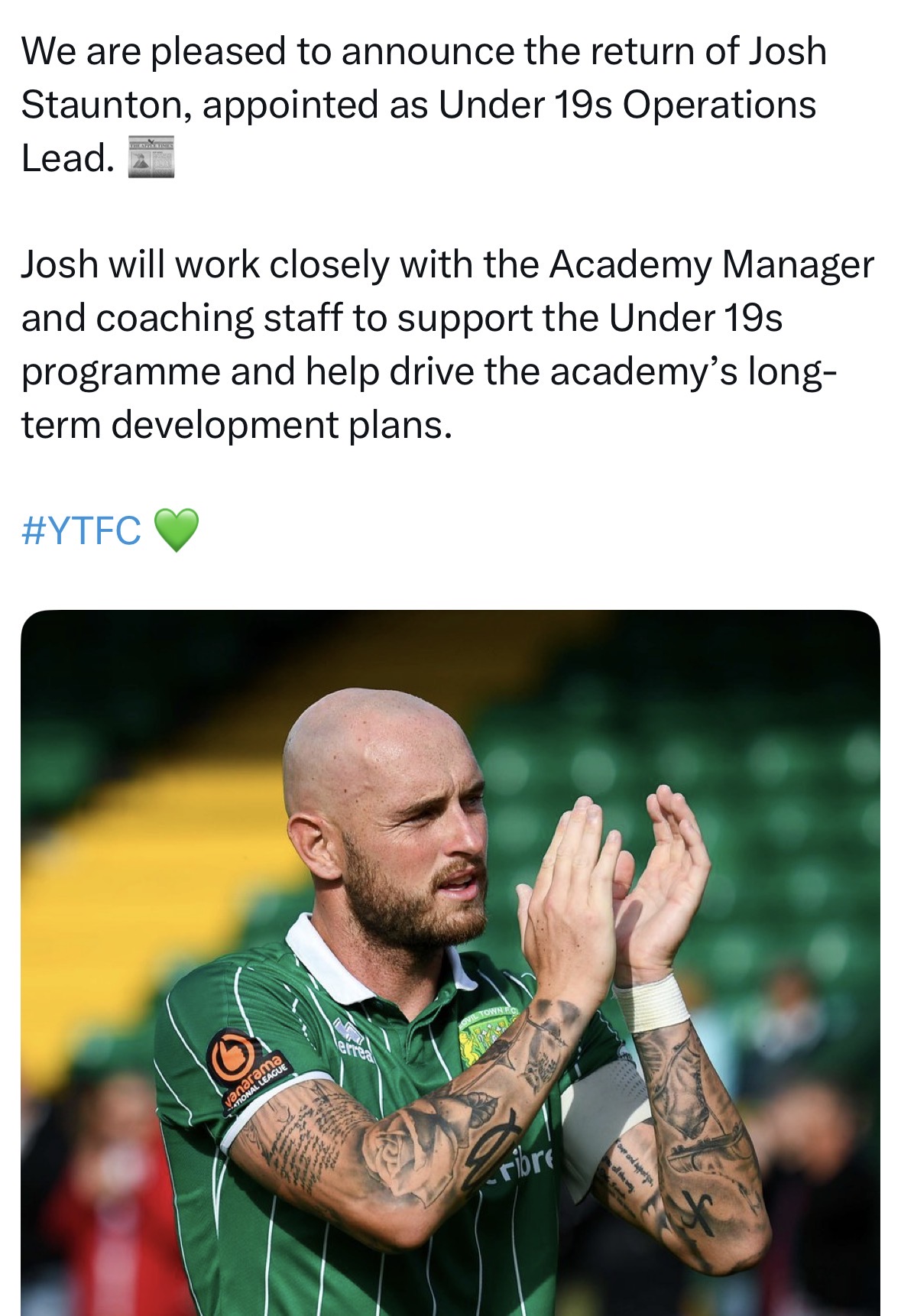 Fabulous news, someone who ‘gets’ Yeovil, will be a real asset for Billy. Welcome Home Josh.