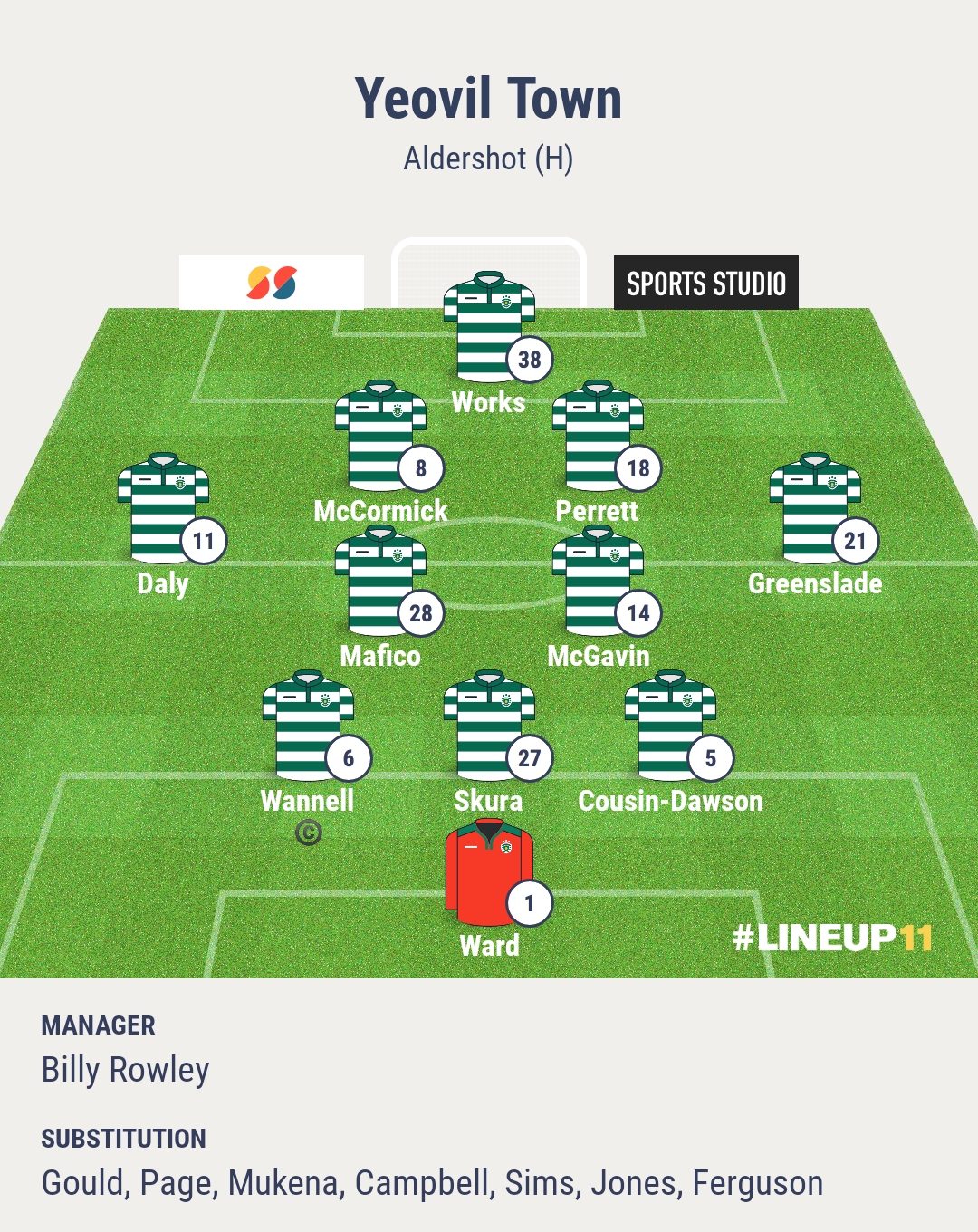 Yeovil Town have made three changes to their starting XI from Saturday’s 1-1 draw with Rochdale as they take on Aldershot Town at Huish Park tonight (7.45pm kick-off).